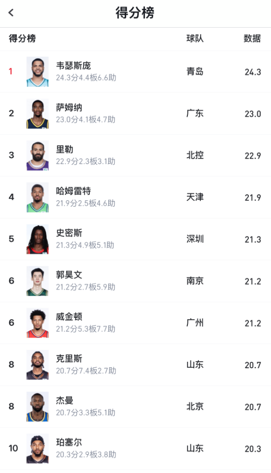 要知道,深圳外援史密斯场均拿下21.3分,排在得分榜第5位,贺希宁和王浩然非但没有被影响,甚至能跟外援组成“三巨头”。